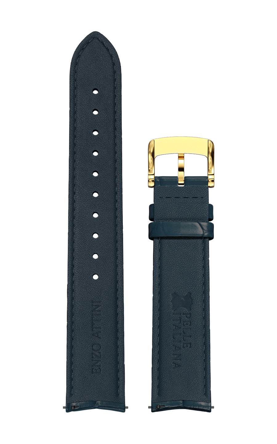 Rripi prej lëkure Italiane (nga të dyja anët), blu e errët, me përmasa të rregullueshme  (gjerësi 20mm dhe përmasë kyçi nga 14 - 23 cm).