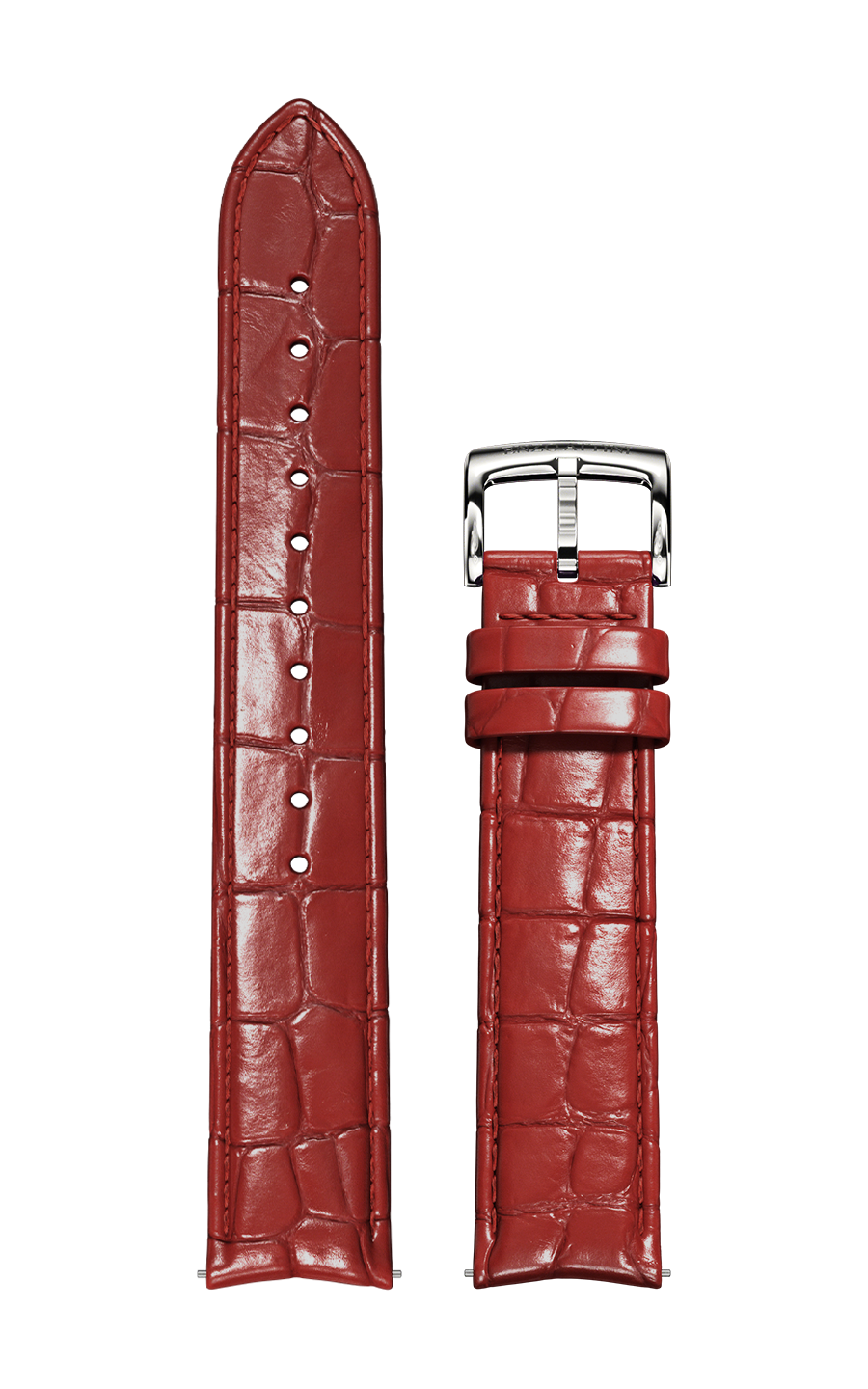 Rrip lëkure i kuq (dizajn si krokodil) / togza ngjyrë silver